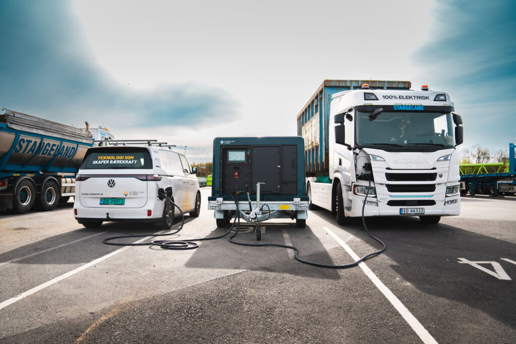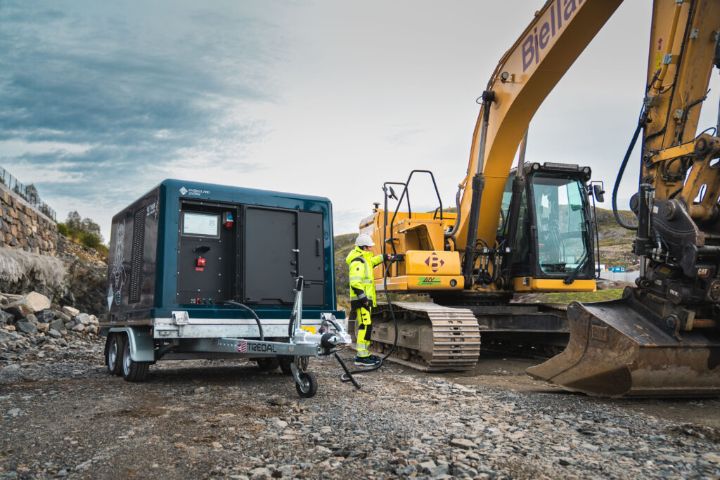 Resultatet er en praktisk, transportabel energistasjon som brukes til lading av både gravemaskiner, lastebiler og annet elektrisk utstyr – akkurat der behovet oppstår.