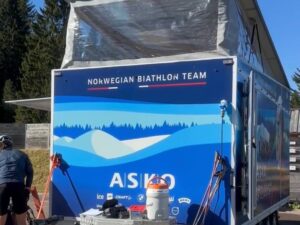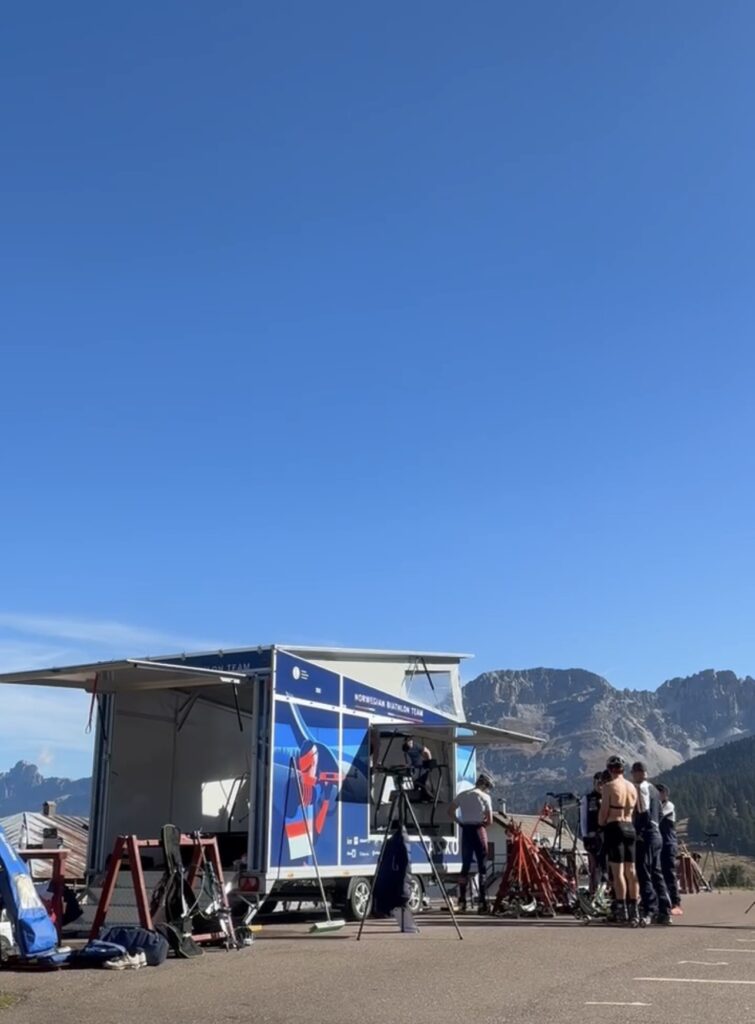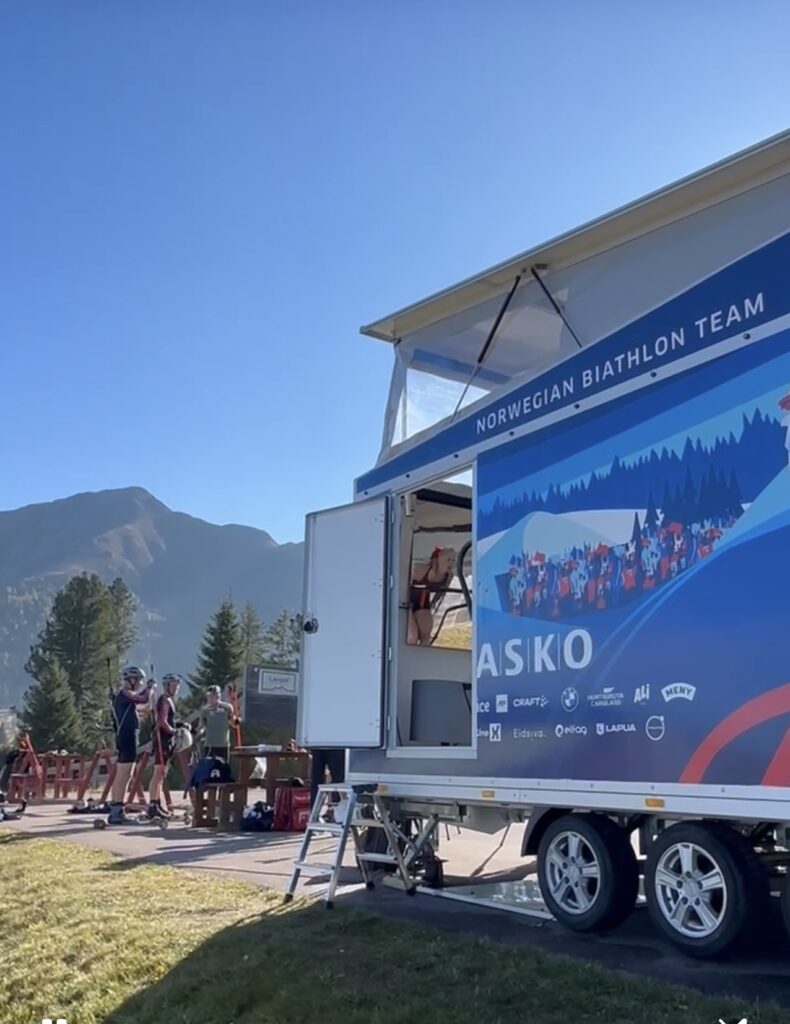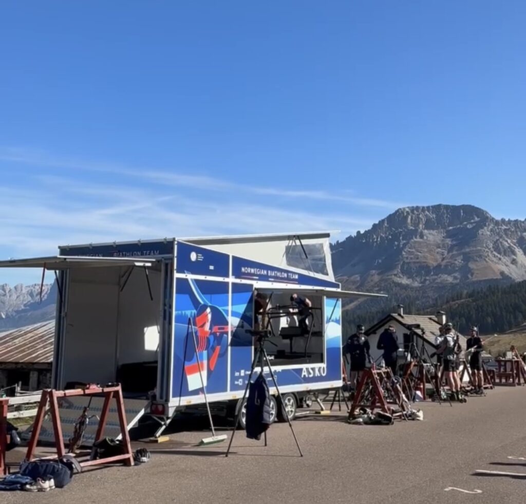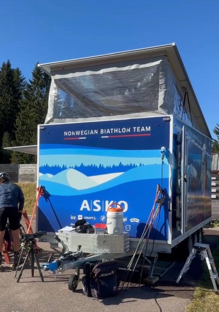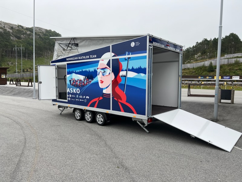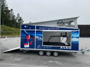 Vi utviklet denne spesialbygde hengeren for Norges skiskytterlandslag. Den rommer en stor tredemølle for rulleskitrening og gjør det mulig å flytte treningsarenaen mellom konkurranser og samlinger.